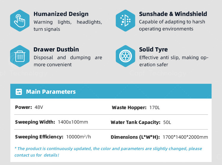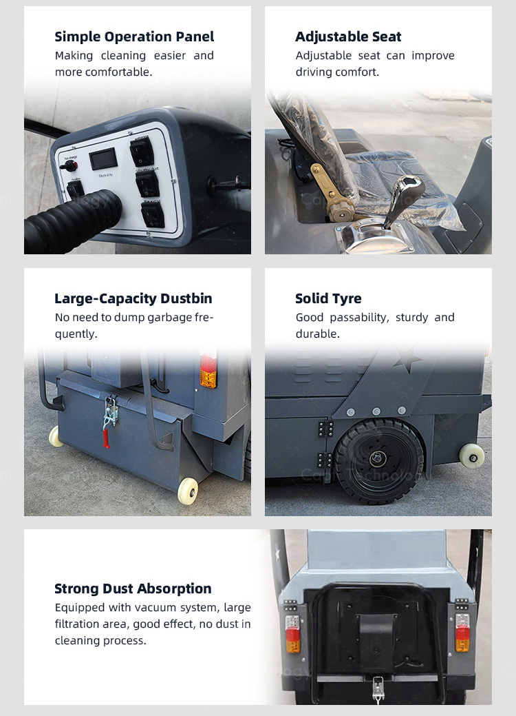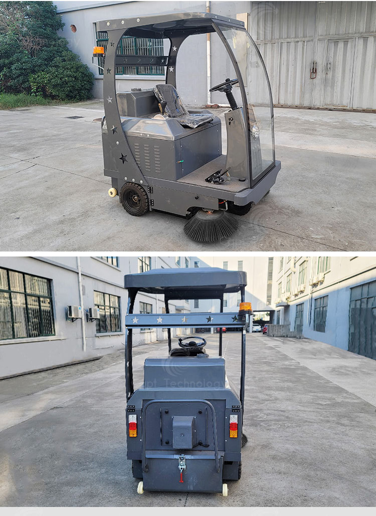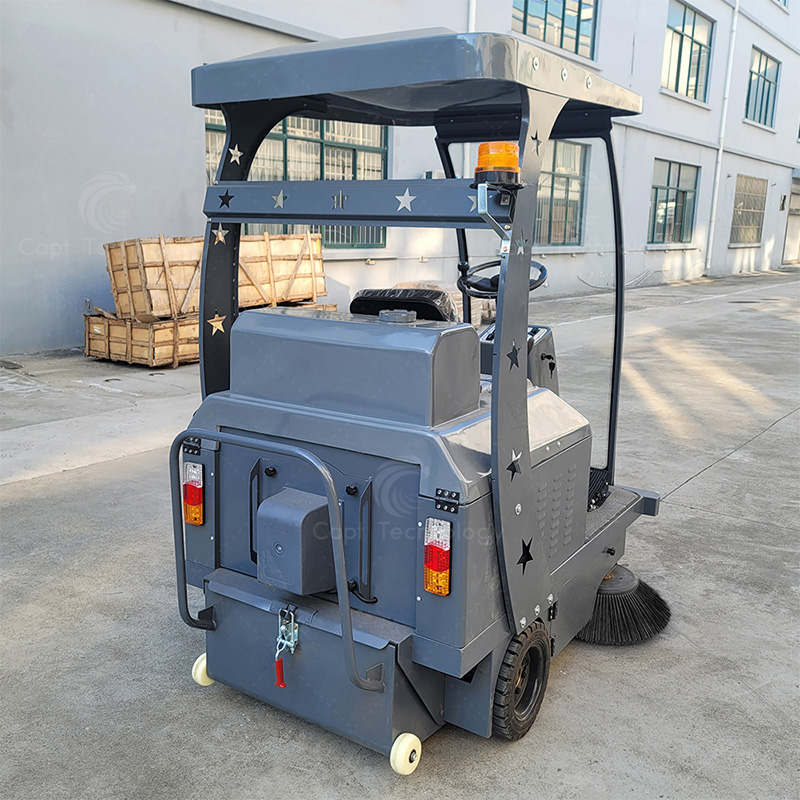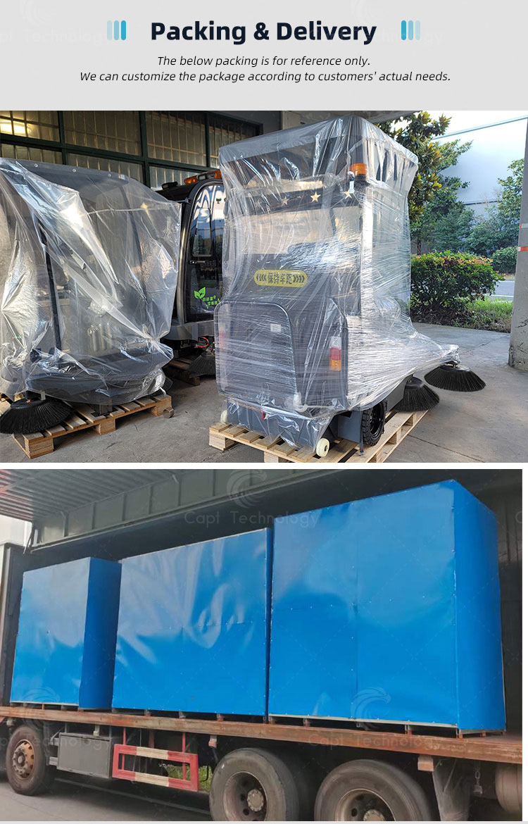 2.The sweeper is equipped with water spraying and dust reduction device, which can reduce the dust fly during the cleaning process and prevent secondary pollution.