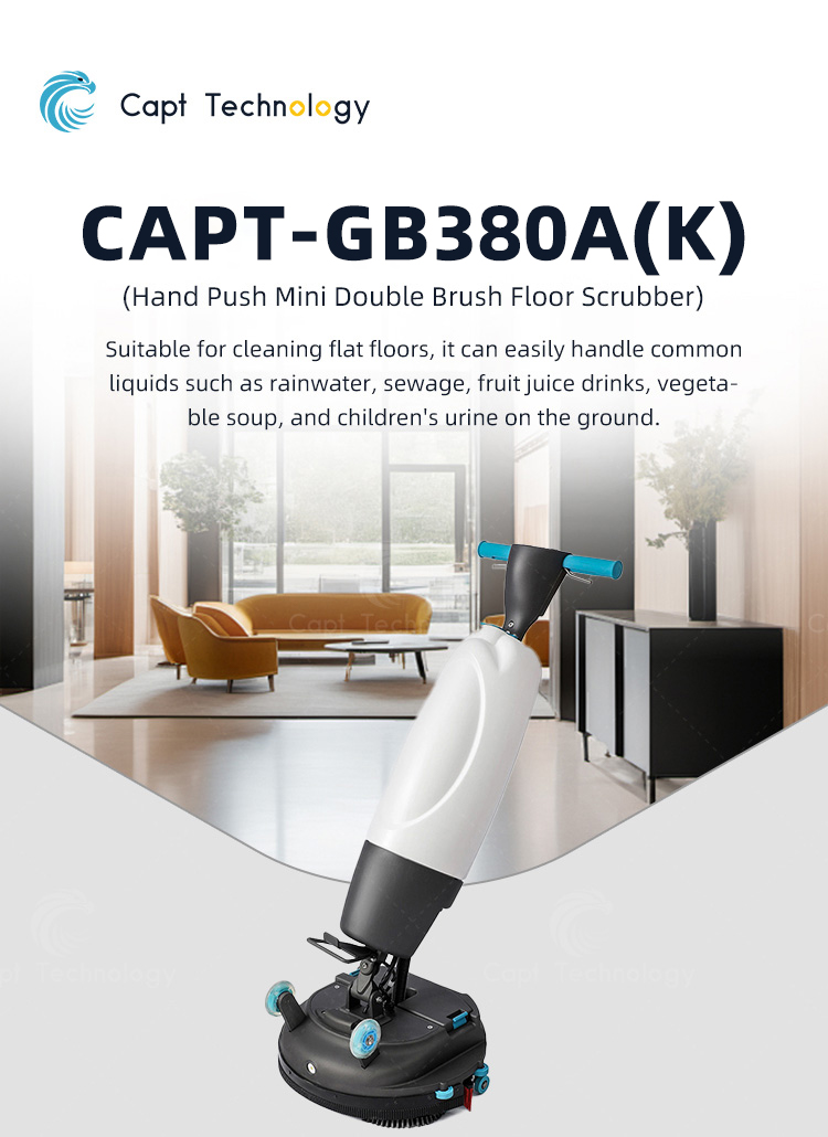 This scrubber is suitable for cleaning flat surface. The dirty water is sucked into the sewage tank by the suction scraper behind the machine. The product is beautiful in appearance, small in size, easy to carry, and clean the narrow and low area that the general floor washer can't reach.