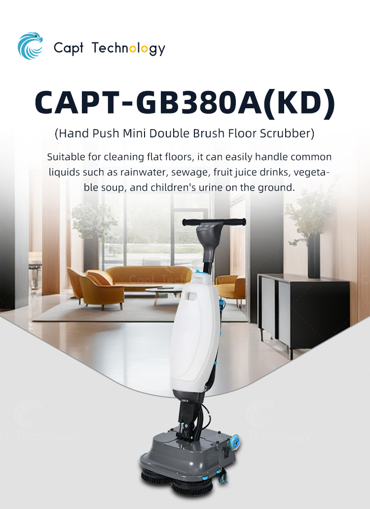 This scrubber is suitable for cleaning flat surface. The dirty water is sucked into the sewage tank by the suction scraper behind the machine. The product is beautiful in appearance, small in size, easy to carry, and clean the narrow and low area that the general floor washer can't reach.