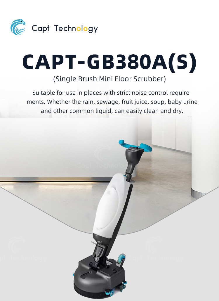 This scrubber is suitable for cleaning flat surface. The dirty water is sucked into the sewage tank by the suction scraper behind the machine. The product is beautiful in appearance, small in size, easy to carry, and clean the narrow and low area that the general floor washer can't reach.