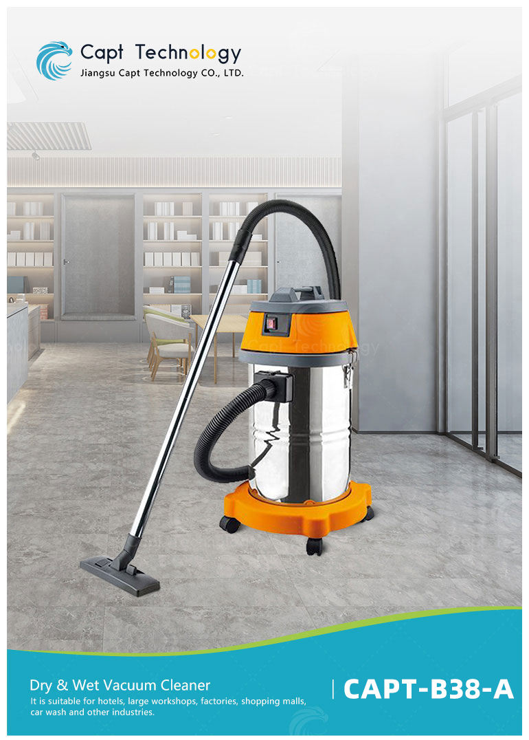 CAPT-B38-A is wet and dry dual-purpose dust suction and water suction machine. It is suitable for hotels, large workshops, factories, shopping malls, car wash and other industries. The machine designed with strong suction, stainless steel barrel, crush resistance, durable, longer life.