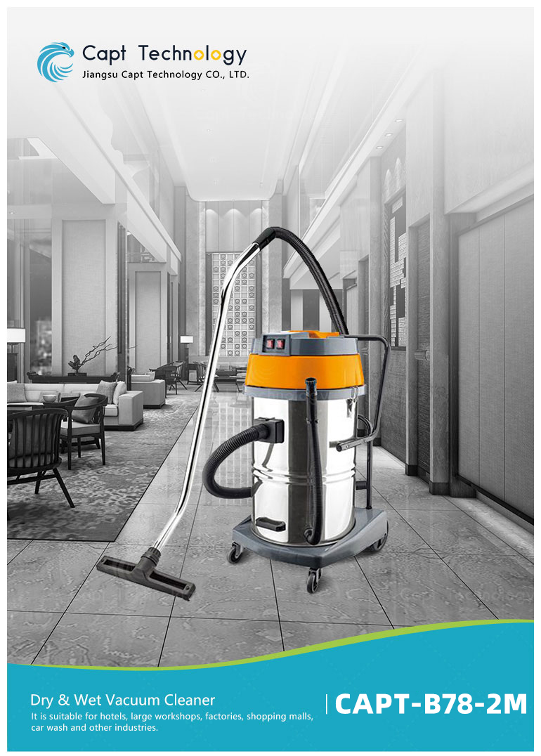 CAPT-B78-2M is wet and dry dual-purpose dust suction and water suction machine. It is suitable for hotels, large workshops, factories, shopping malls, car wash and other industries. The machine designed with strong suction, stainless steel barrel, and crush resistance, durable, longer life.