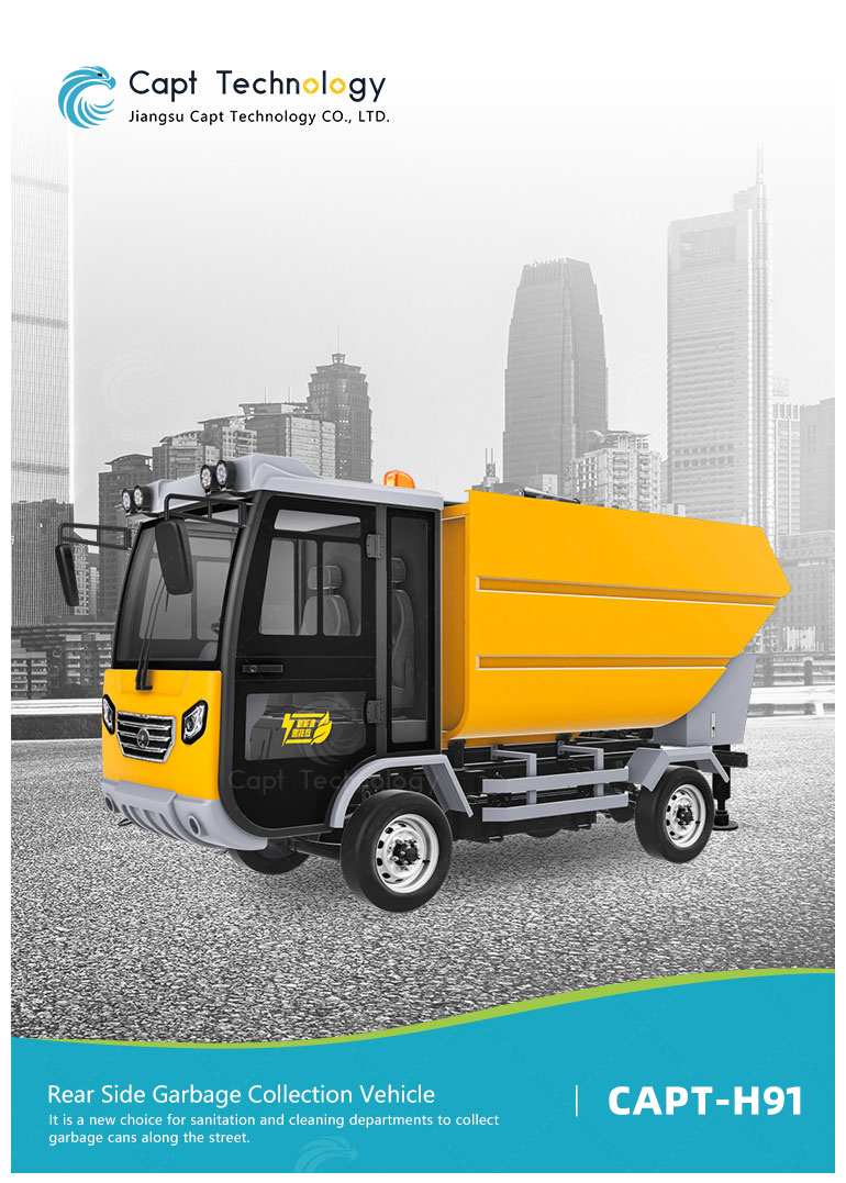 CAPT-H91 is a rear side garbage collection vehicle with unique cab. It is a new choice for cleaning departments to collect garbage and transport it in airport, dock and parking lot. It's use for on site transport Vehicle.